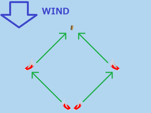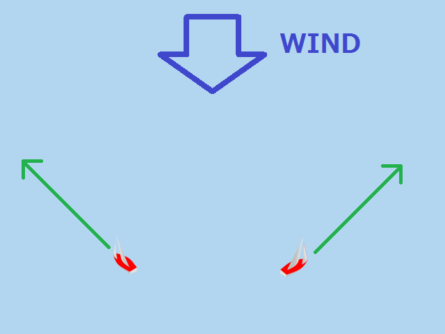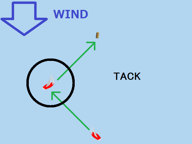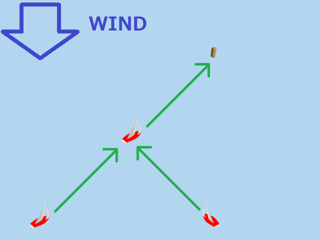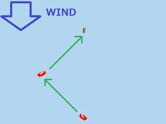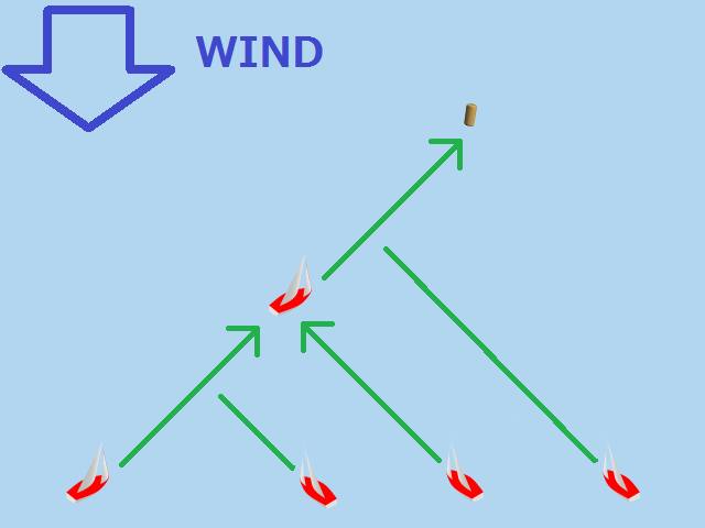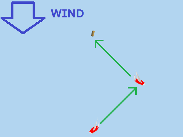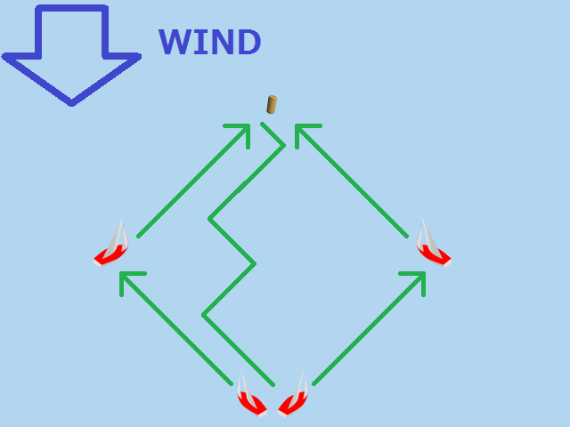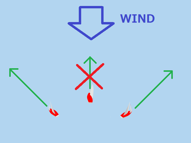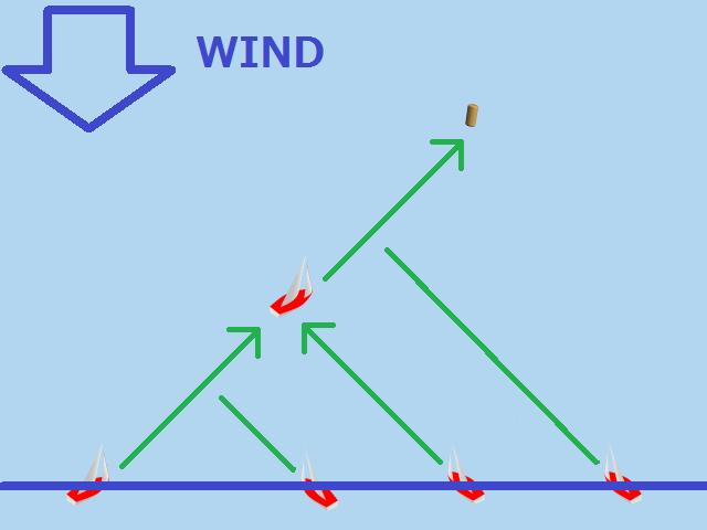風上にあるマークへは、斜めに進んでから方向転換して、また斜めに進んで行きます。