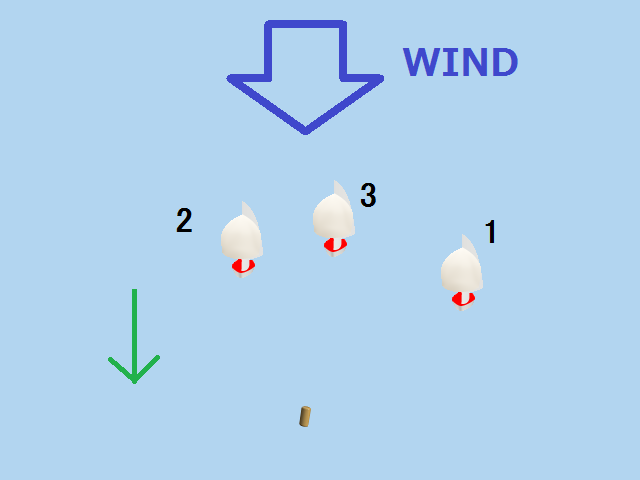 この風に対する3つの走り方、前、横、後を組み合わせてコースを作ります。