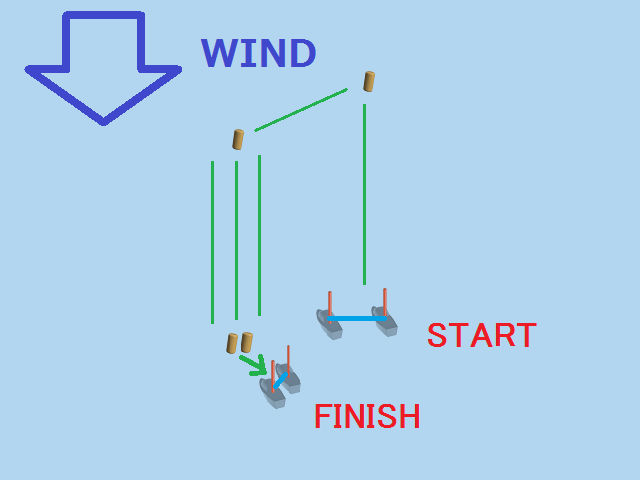 ただ違うところもあって、ヨットレースではマークと呼ばれるブイを何個か浮かべておいて、スタートしたら、そのブイを順番に回っていき、最後にゴールする。というルールになっています。